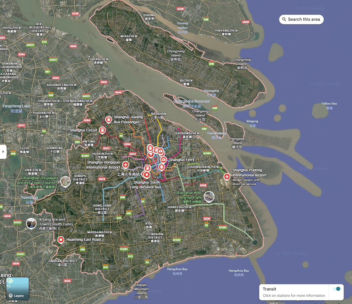 Image source: Google Maps Transit – Shanghai urban and suburban bus routes.